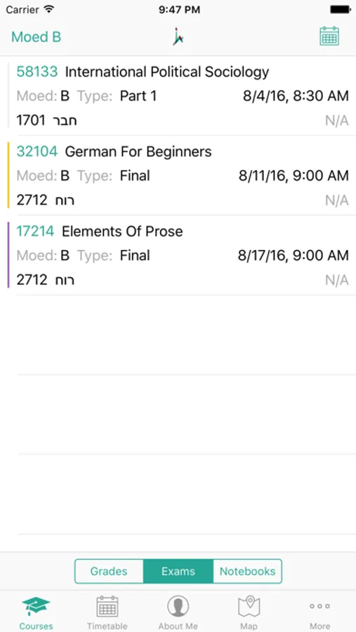 • Quick access to the Shnaton and syllabus for every course listed in the app, as well as any course number.