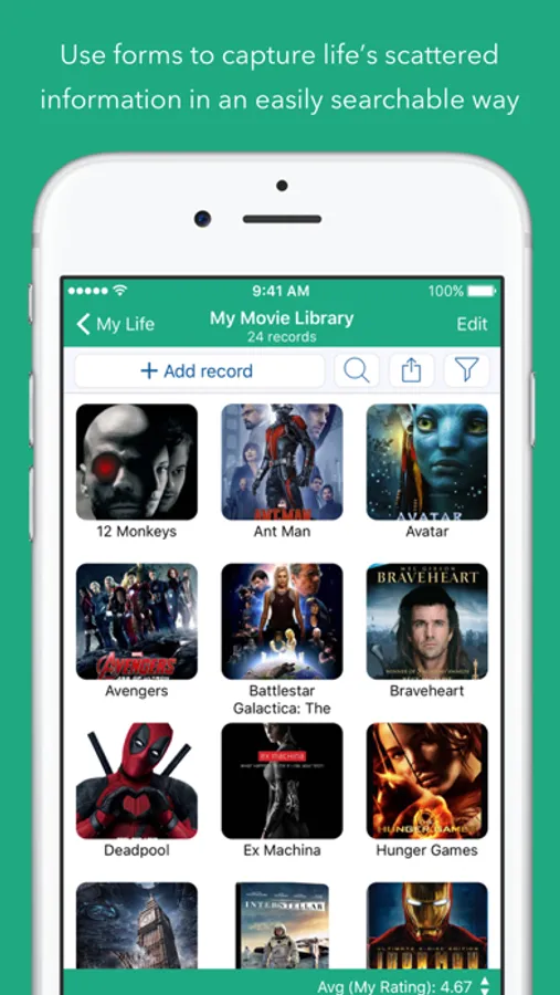 How can one app organize everything? Because not only can you use and customize the more than 30 built-in templates but you can create your own “forms” for inputting any kind of information, even if that information includes pictures, doodles, audio recordings, calculations, file attachments, ratings, or even links to other forms. This makes it almost like building your very own customized organization app.