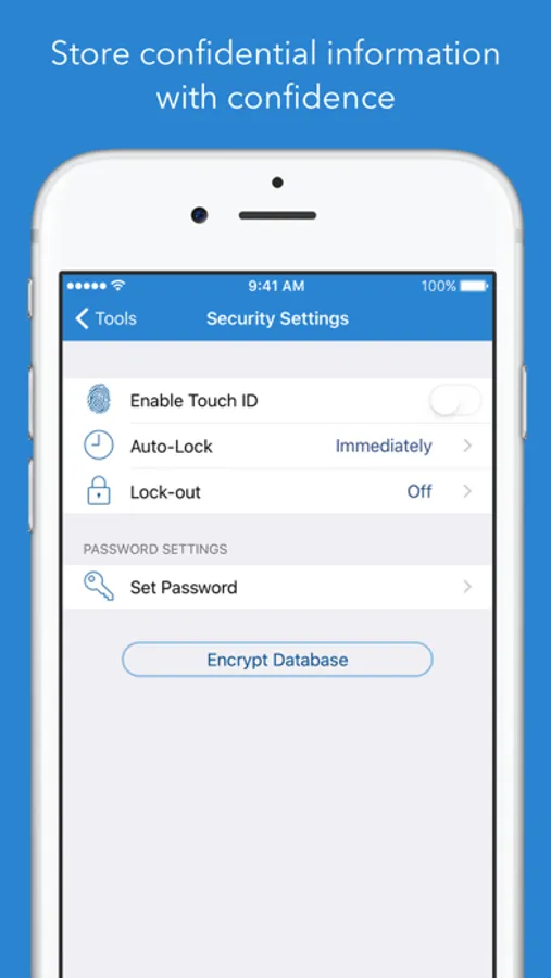 • Store confidential data with confidence: Tap Forms' security settings let you optionally require a password or a Touch ID scan, and even auto-lock when idle for a custom period of time. Using AES encryption, you can rest easy knowing your data is safe and secure.