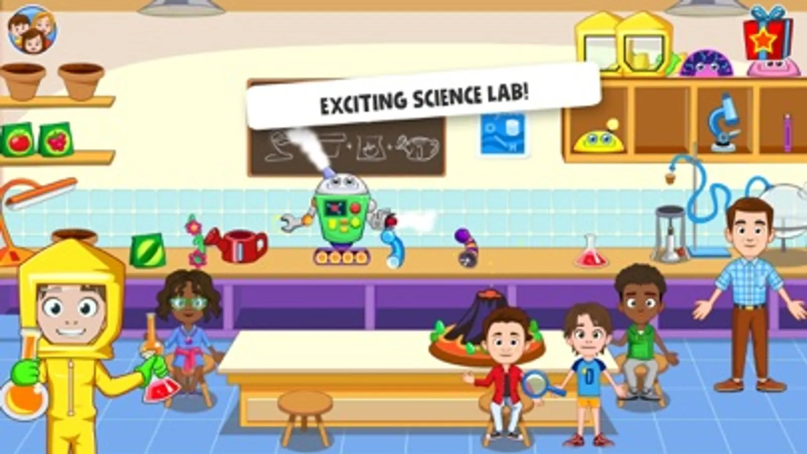 The bell is ringing at the My Town : School! Let your child show you what they’re in their classroom by visiting the My Town classroom. Do your children play an instrument? Let them play some music for you in the My Town music class where they can learn notes and play the piano, strum along to some tunes on the guitar or make some noise on the drums! Become a mad scientist in the science lab, but don’t miss the Tesla before you head out to the school yard where the coach will teach a variety of sports like tennis, baseball, basketball and even badminton!