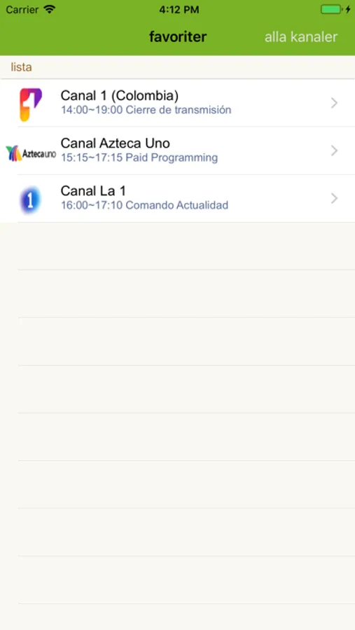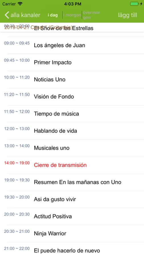 Se puede ver el listado de programas de cada canal para los próximos 3 días .