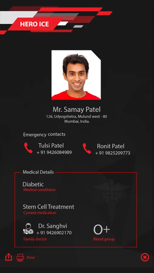 The app also has a feature to create multiple ICE cards for your friends and family members. It is also advisable to use the ‘Print’ feature to keep a copy of the ICE card handy,