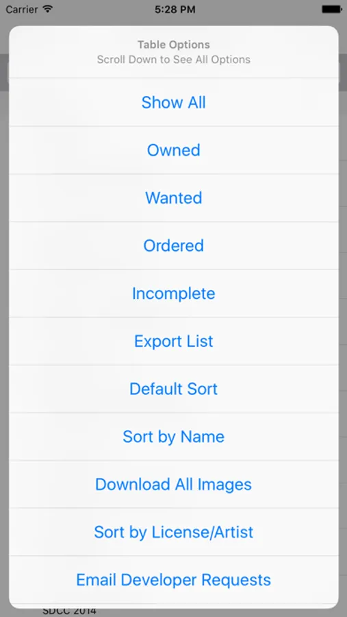 9) Quickly filter between all, owned, wanted and more from the Options menu