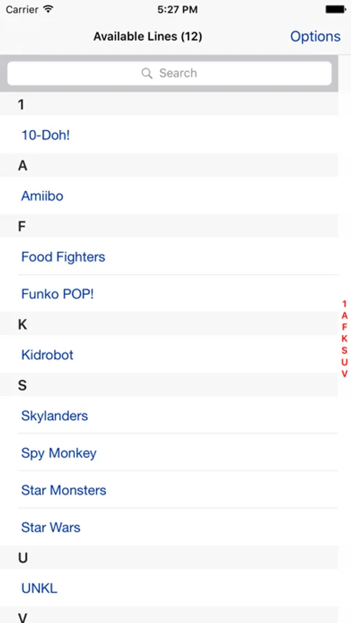 8) Quickly filter between just lines you collect and all lines available in the application from the Options menu