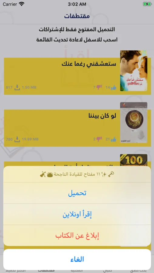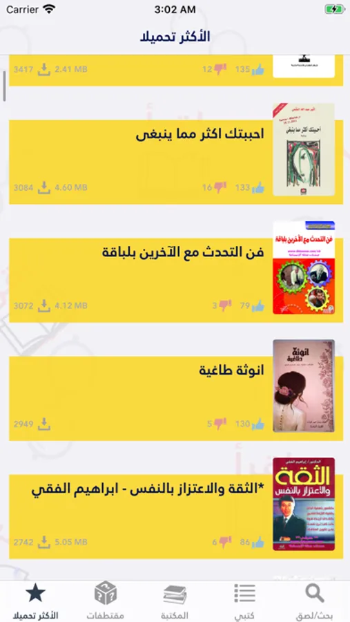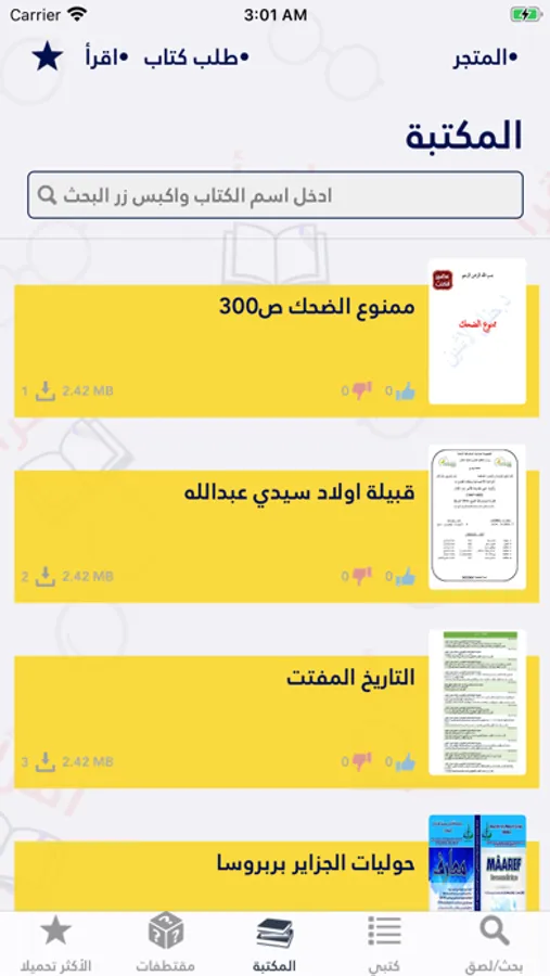 - يمكنك مشاهدة عدد التحميلات والاعجابات لكل كتاب
