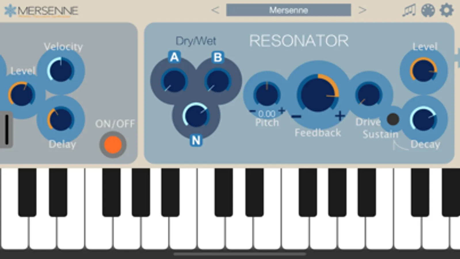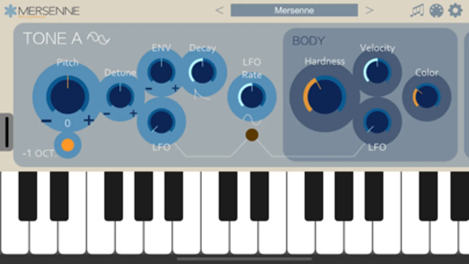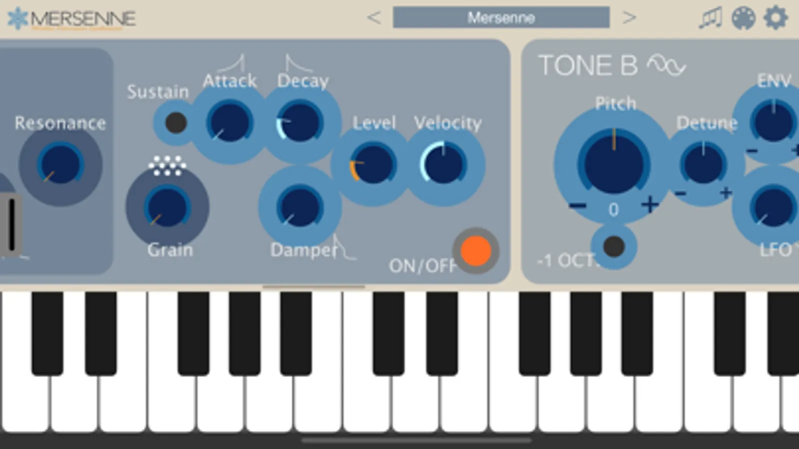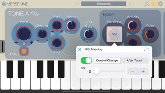 Mersenne is an AUv3-compatible synthesizer that combines two FM synthesis modules, a noise generator, and a resonator to create bell-like sounds.