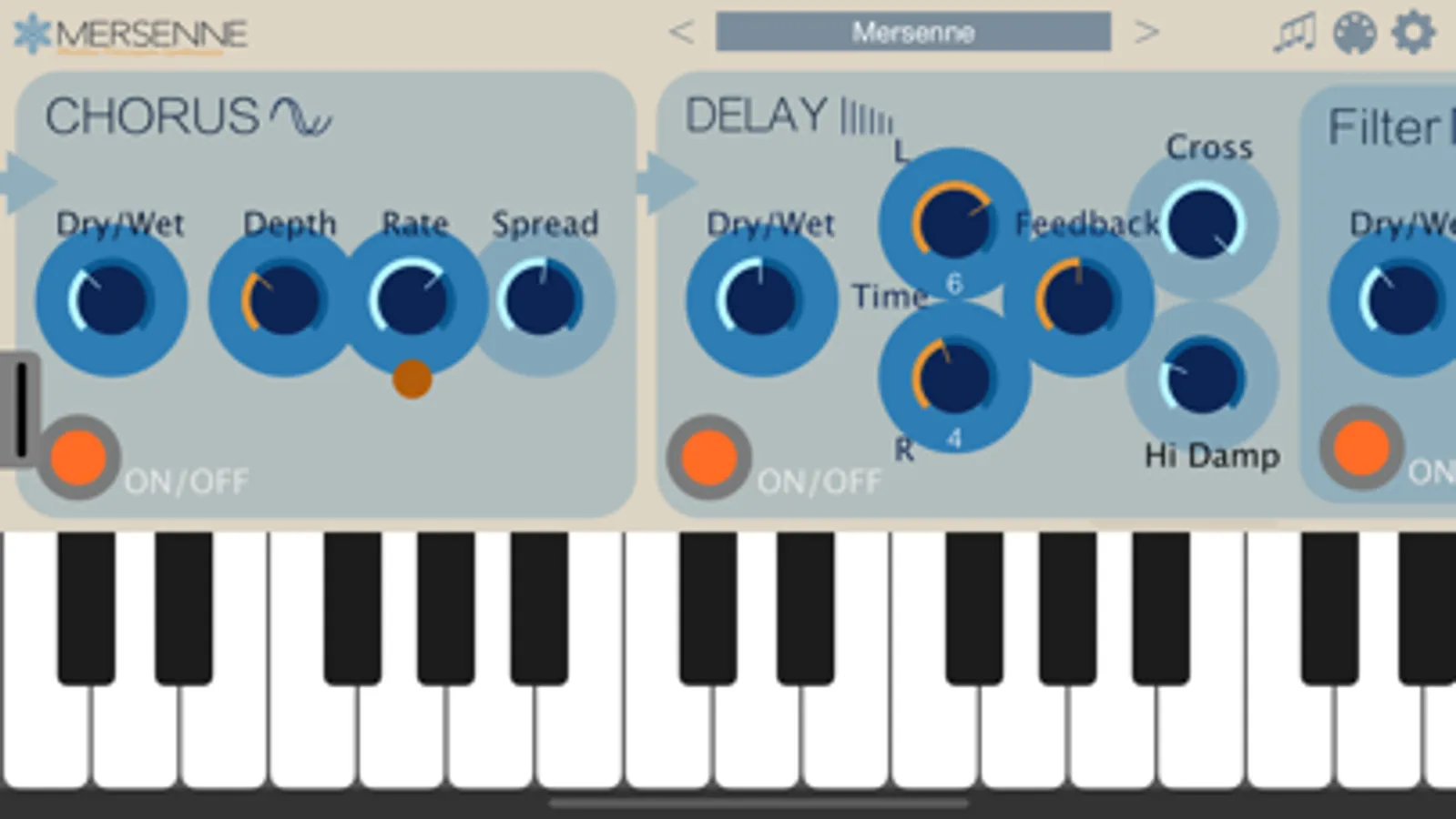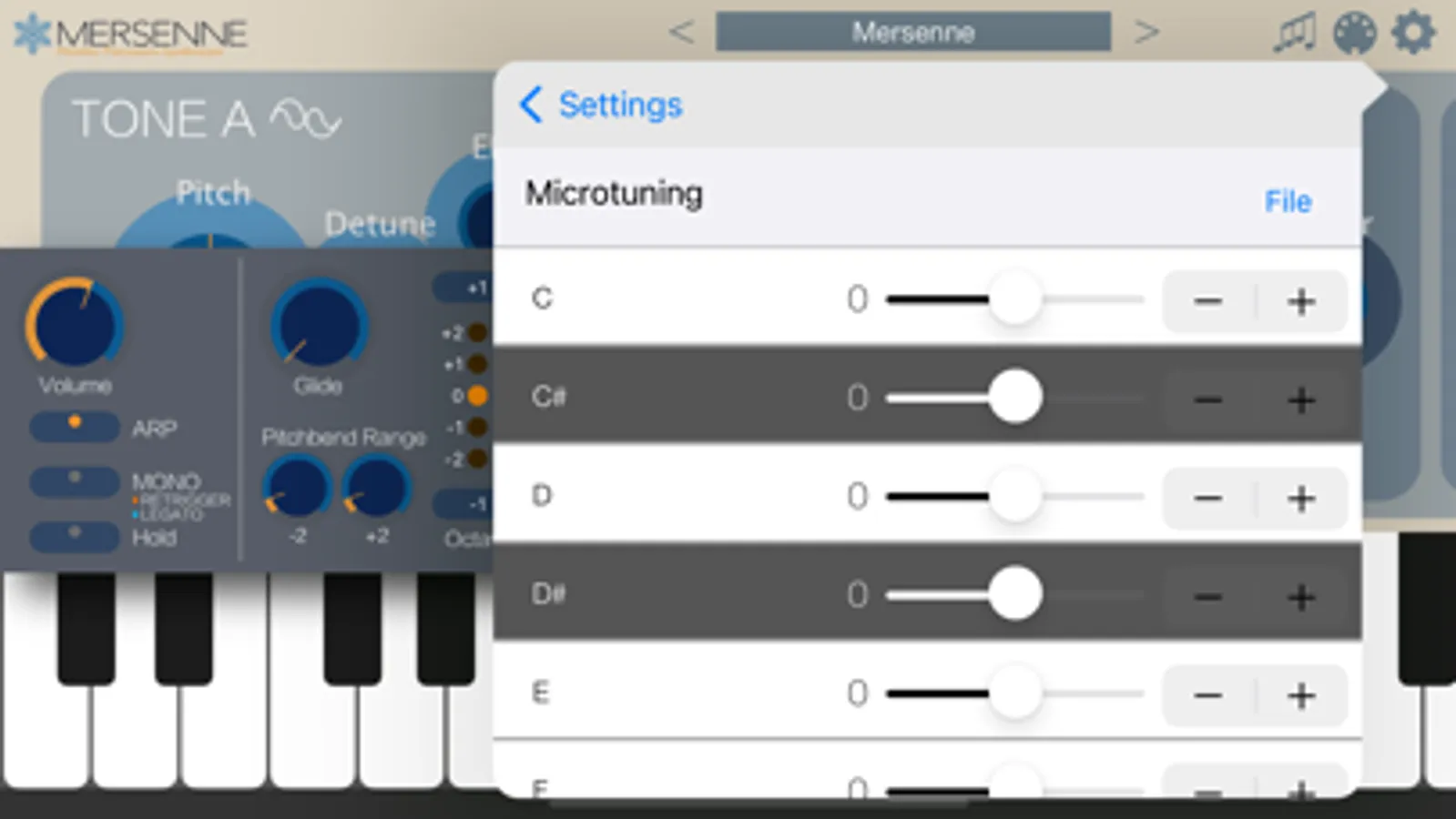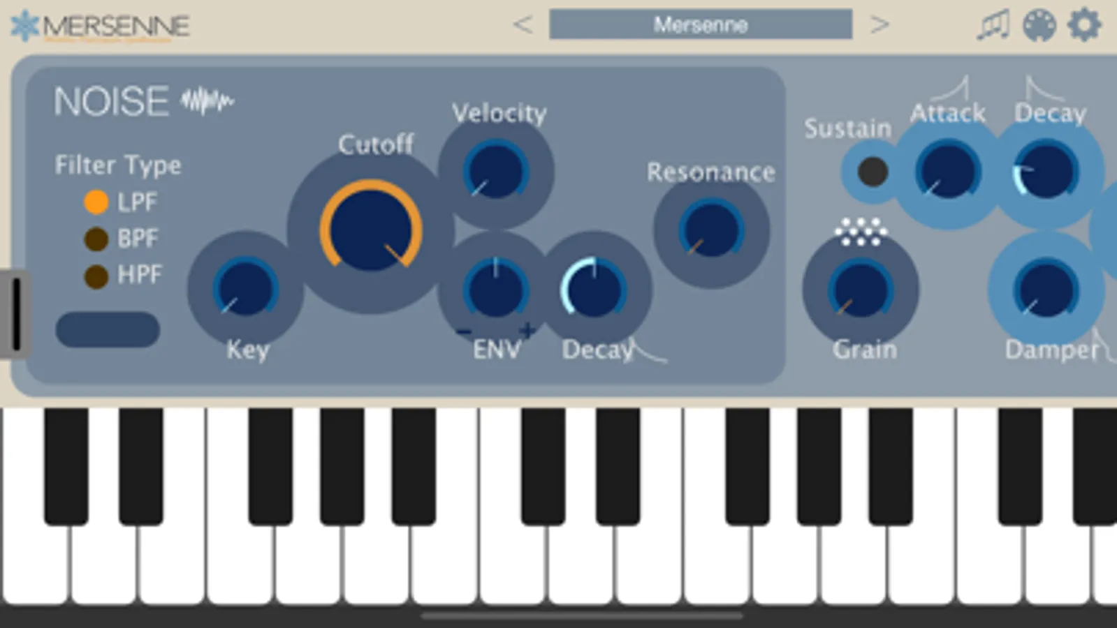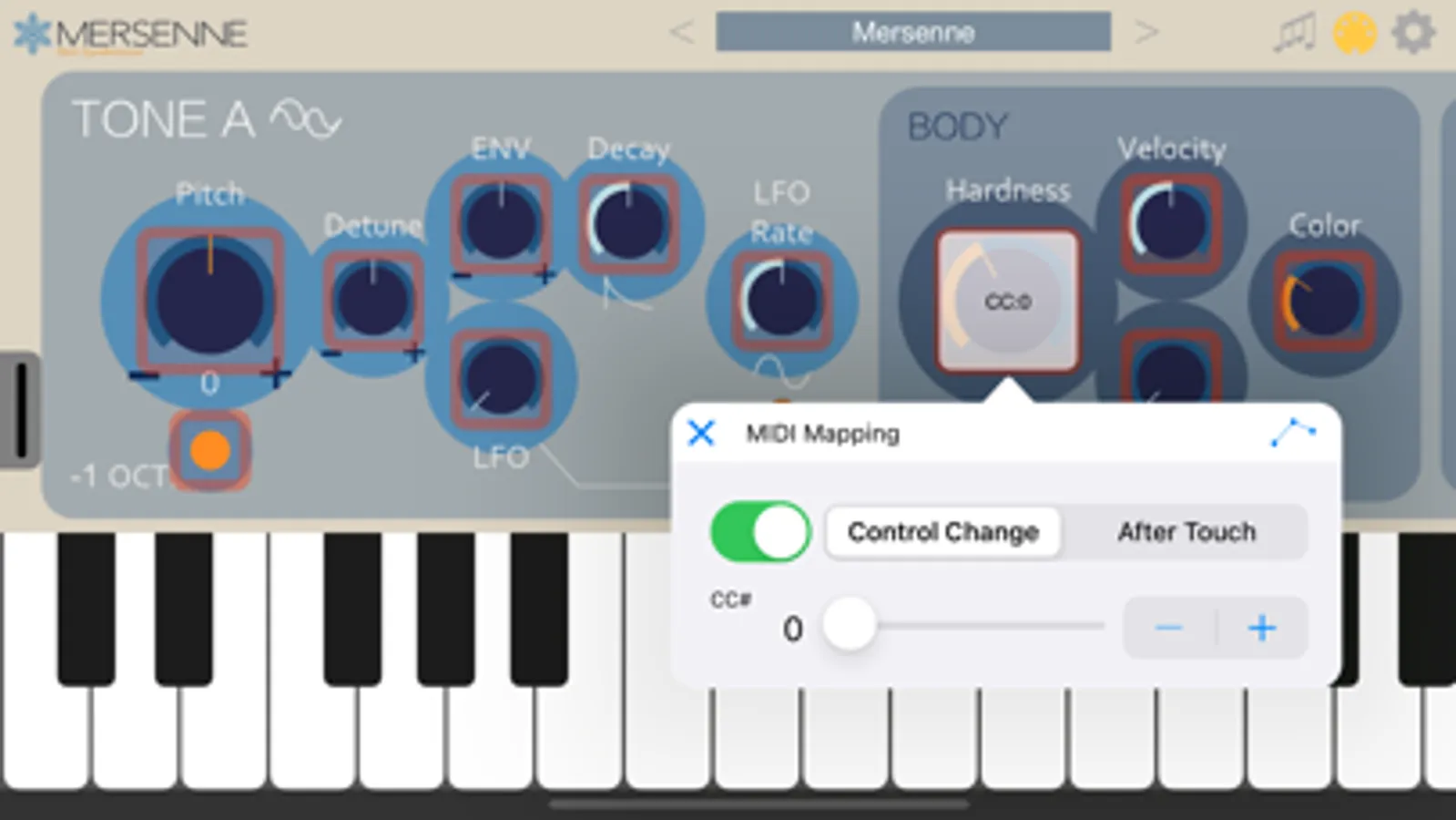 Mersenne is an AUv3-compatible synthesizer that combines two FM synthesis modules, a noise generator, and a resonator to create bell-like sounds.