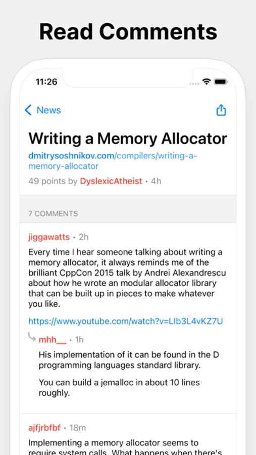 - Smart indentations and formatting for comments, complementing the existing limited formatting from Hacker News.