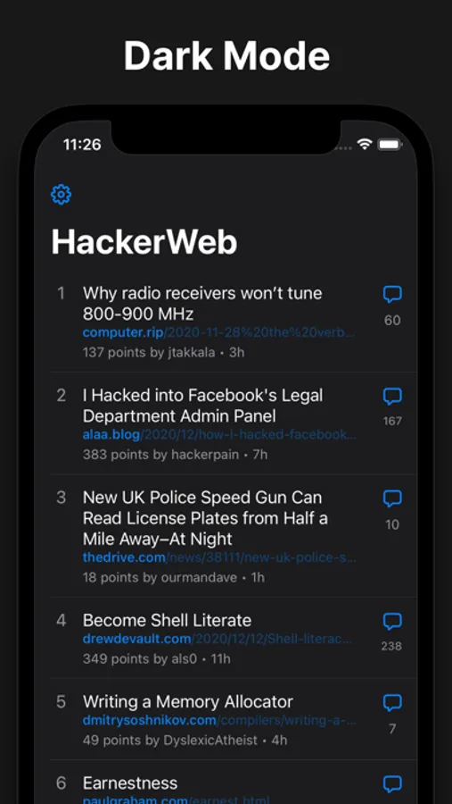 HackerWeb is a super-clean Hacker News app built for maximum readability and has a lean set of features to optimize the reading experience.