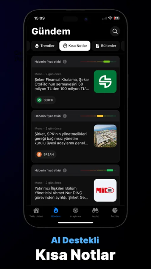Önemli gelişmeleri takip etmek artık daha kolay. Yapay zeka destekli kısa notlarımız, yatırımlarınızı hızlandırmak için yanınızda.