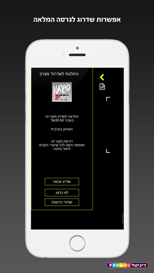 - פאנל שידרוג נוח לתפעול, ובתוך דקות הגרסה המלאה מותקנת במכשירכם להמשך הלימוד.