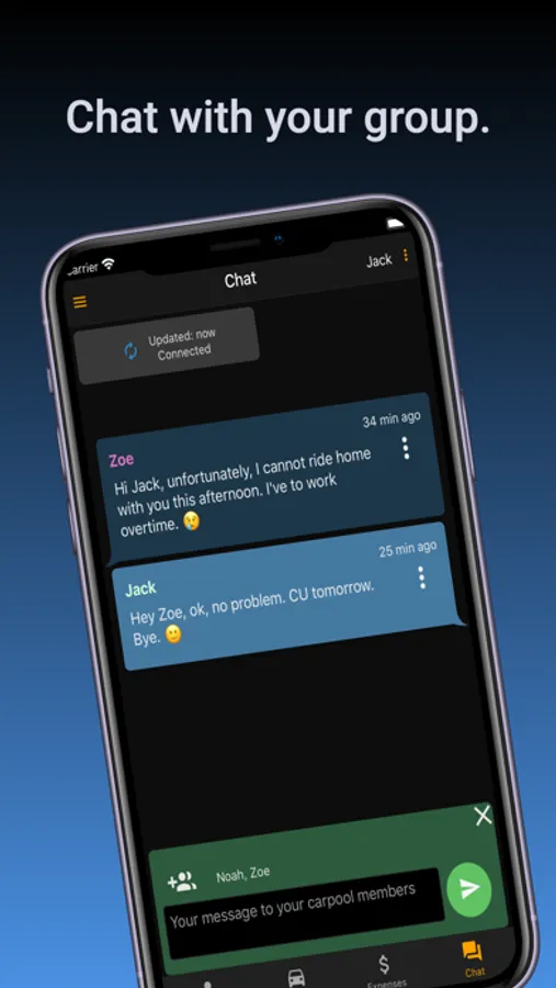 • Each member of the carpool can change the data of their group, so that it’s no problem if riders don’t have a mobile device or if they are slow updating their data.