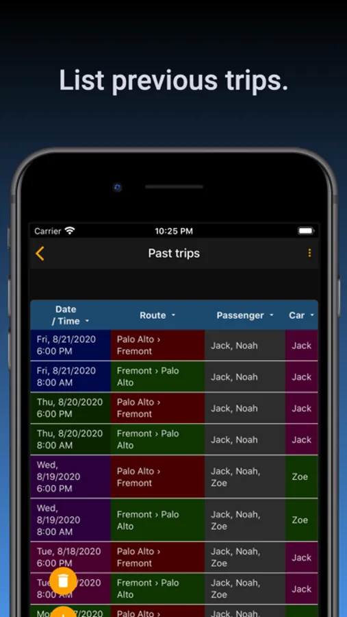 • Possibility to modify data of past trips to correct the passenger list or adjust costs.