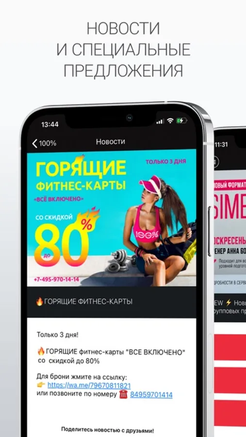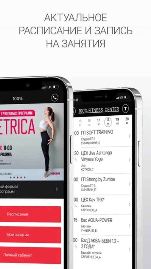 Приложение Фитнес-центра 100% позволит Вам быть в курсе новостей клуба, иметь при себе актуальное расписание групповых занятий и достигать реальных результатов!