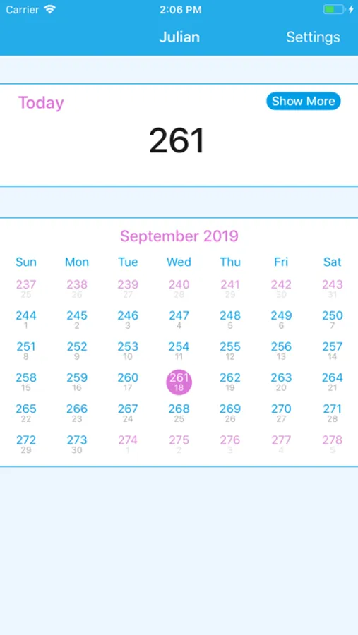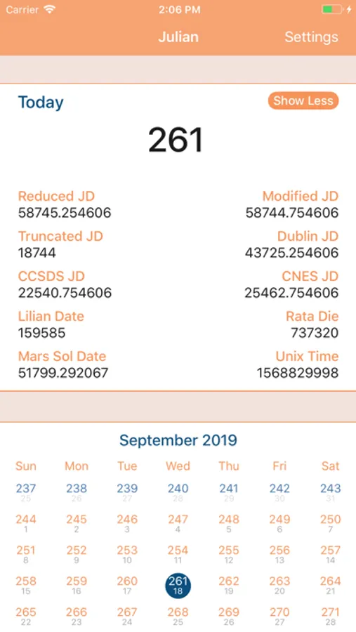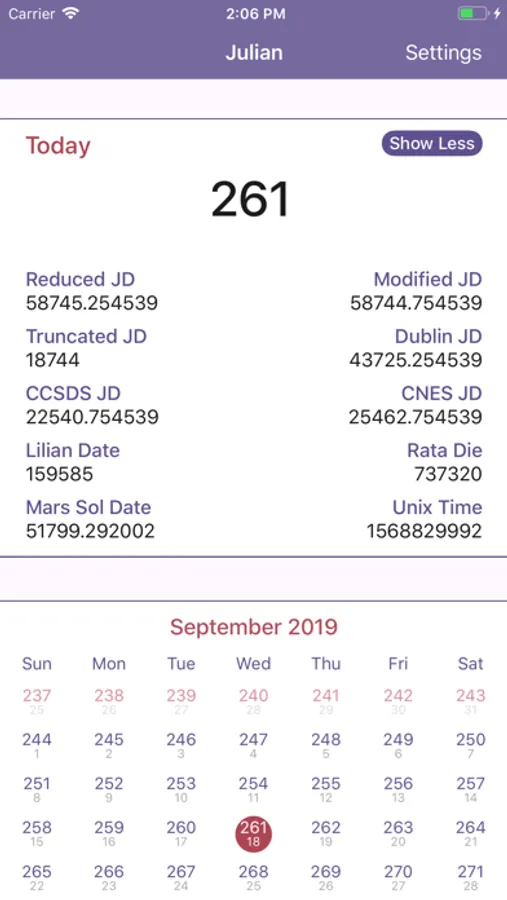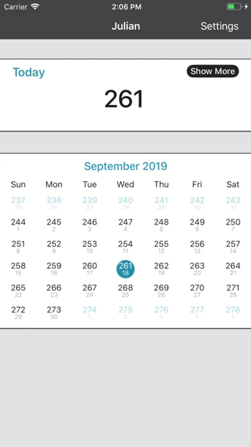 To make things more efficient, Julian provides a calendar to view dates of days throughout the year. Tapping on these copies the date to your clipboard for easy use in other applications.