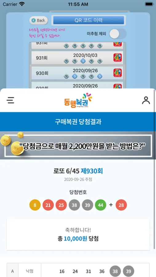 이앱은 동행복권(6/45로또)을 편리하게 이용 할 수 있는 앱입니다. 여러분의 대박 행운을 기원 합니다.