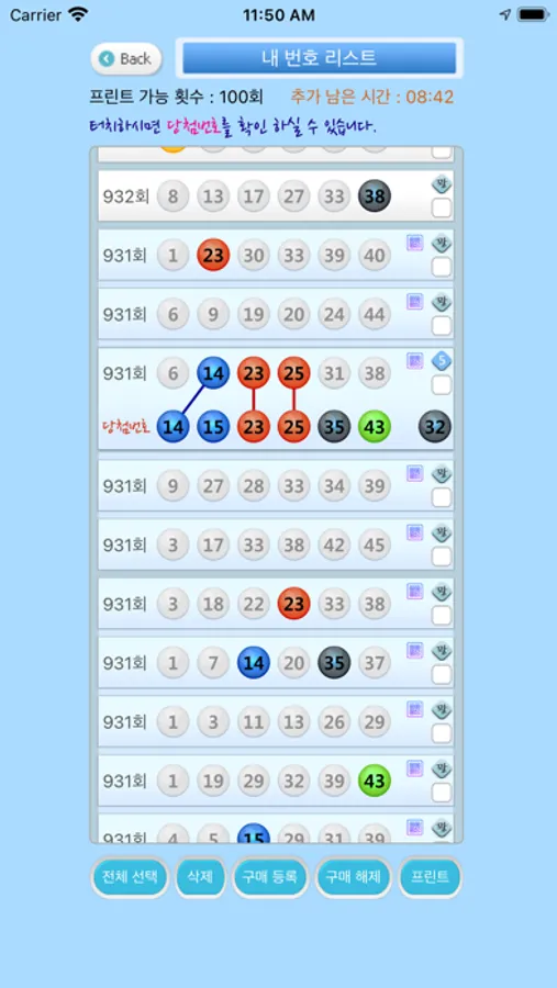 이 앱은 다른 로또 생성기와 달리 판매점에서 싸인펜으로 찍던 불편함을 덜기 위해 번호를 구매용지에 프린트 할 수 있는 기능을 추가 하였습니다.