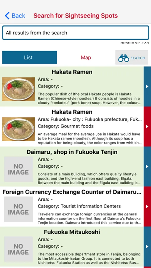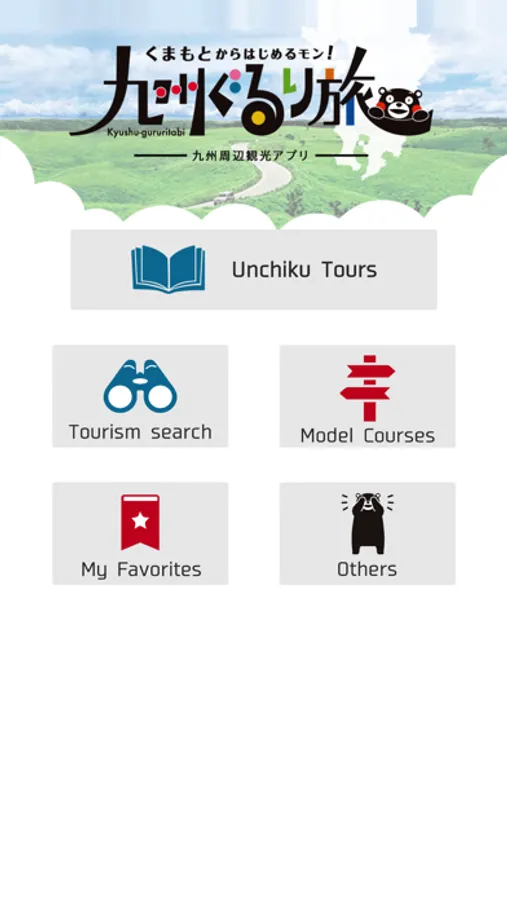 This tourist information search app is useful for Kyushu-related tourism and entertainment primarily in and around the geographical center of Kyushu, Kumamoto Prefecture.