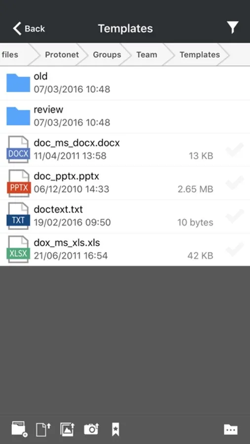 With the Files app you gain access to the files that are stored in the Protonet solution by using your smartphone or tablet. You can swiftly download anywhere with the latest versions of files, for example, reports or presentation templates.