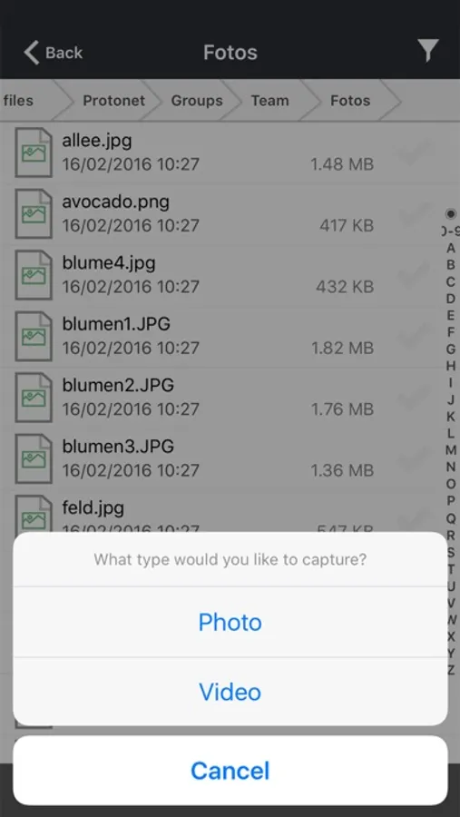 The Files app allows you to store files that have been created or stored on smartphone or tablet, directly on the Protonet solution and independent of the cloud services from Apple or Google.