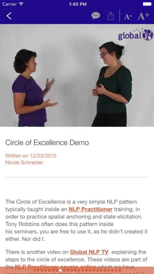 The best way to learn and improve your NLP and coaching skills through a weekly updated NLP app full of videos, audios and other resources. This app is suitable for people new to coaching and NLP, NLP Practitioners, NLP Master Practitioners and trainers. Offered to you by Global NLP Training, the company of choice for NLP training and coaching certification for some of the top coaches in the world, motivational speakers, entrepreneurs, visionaries, trainers, fortune 500 companies, and preferred vendor for the United Nations and US army therapeutic staff.