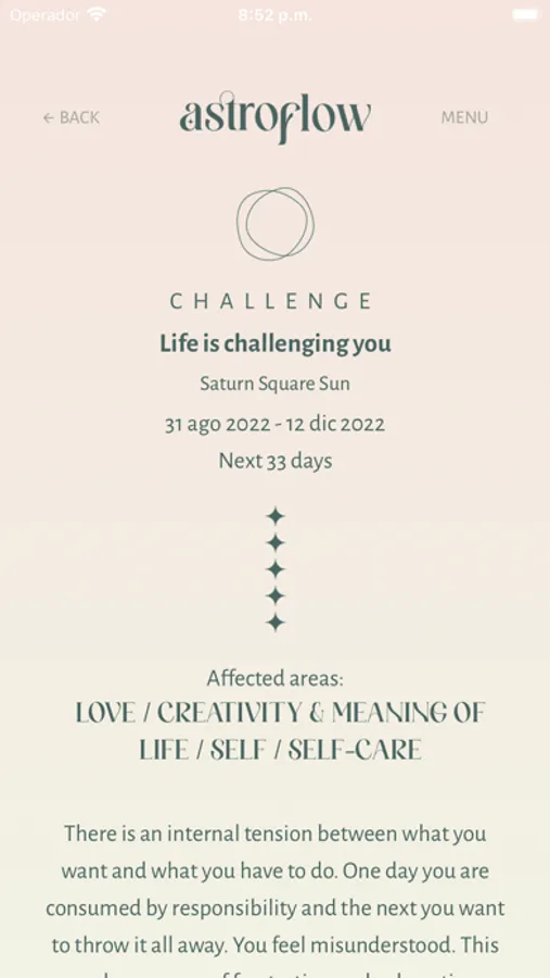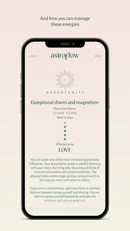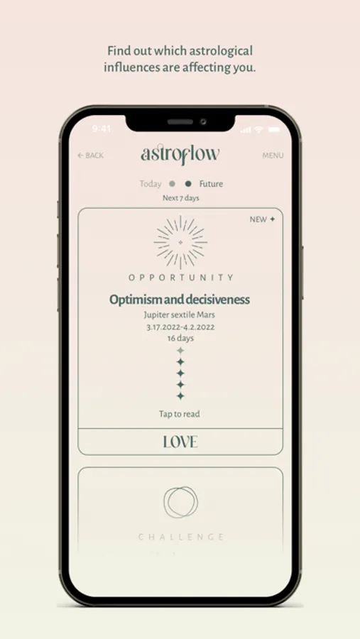 Download Astroflow now, select your subscription and get access to completely personalized information based on your natal chart and manage the available energy in the most appropriate way for you.