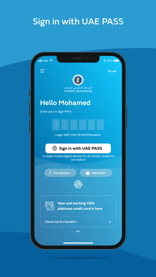 - Login via UAE PASS – Now login in directly to your account using your UAE PASS profile. Gone are the days to remember UAB credentials.