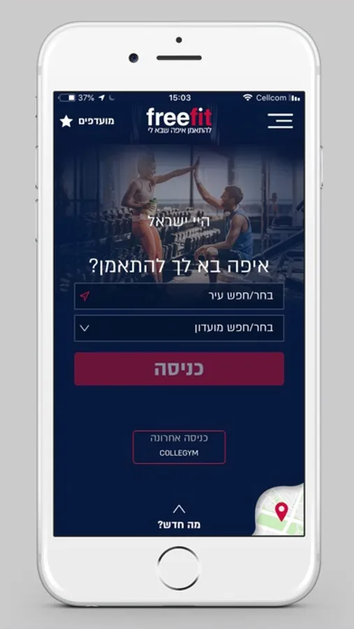 -בכניסה למועדון הכושר פותחים את האפליקציה ולוחצים כניסה!