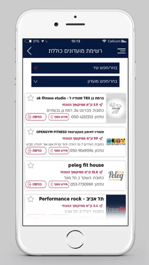 -מחפשים איפה תרצו להתאמן באמצעות מיקום, קרבת מקום, סוג אימון ותחום כושר.