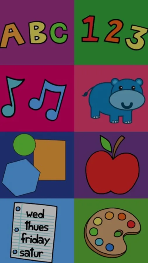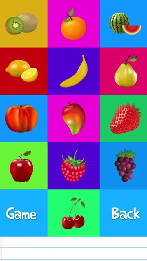 The game has a lot of levels; FRUITS, ANIMALS, MUSIC NOTES, DAYS OF WEEK, COLORS, NUMBERS, LETTERS and SHAPES. All levels has a mini game.