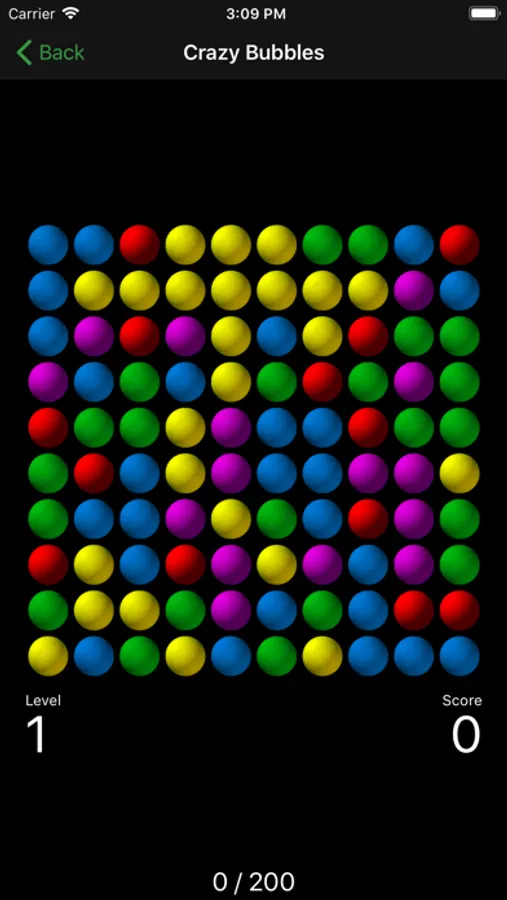 - touch a bubble that has at least one adjoining bubble of the same color