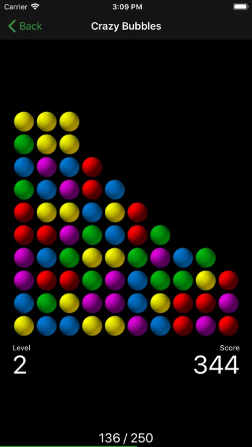 - a new row of bubbles falls top down for each completely emptied column