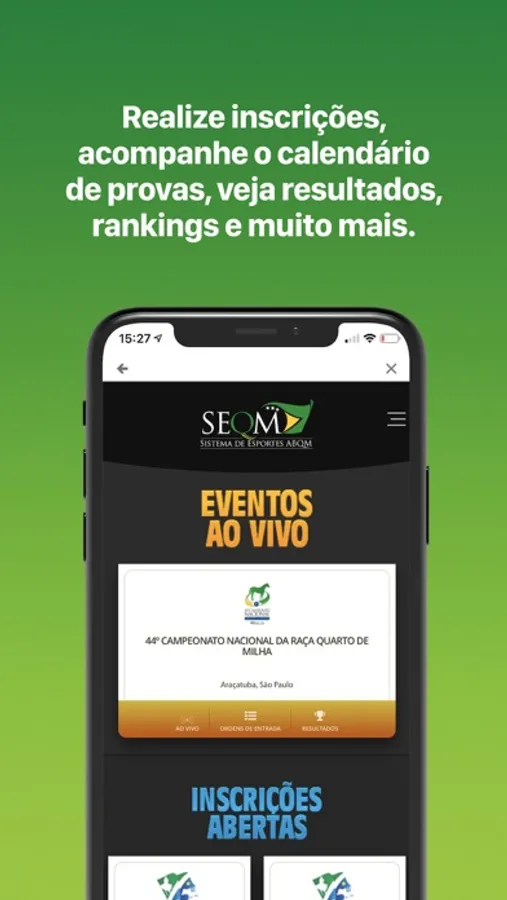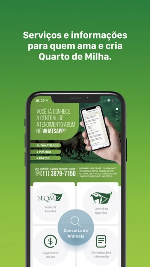 O Aplicativo ABQM Oficial oferece os recursos que todo Criador, Proprietário, Associados, Competidores e apaixonados pelo Quarto de Milha precisam para que possam manter suas atividades em dia na Associação e ter acesso às principais informações da raça.