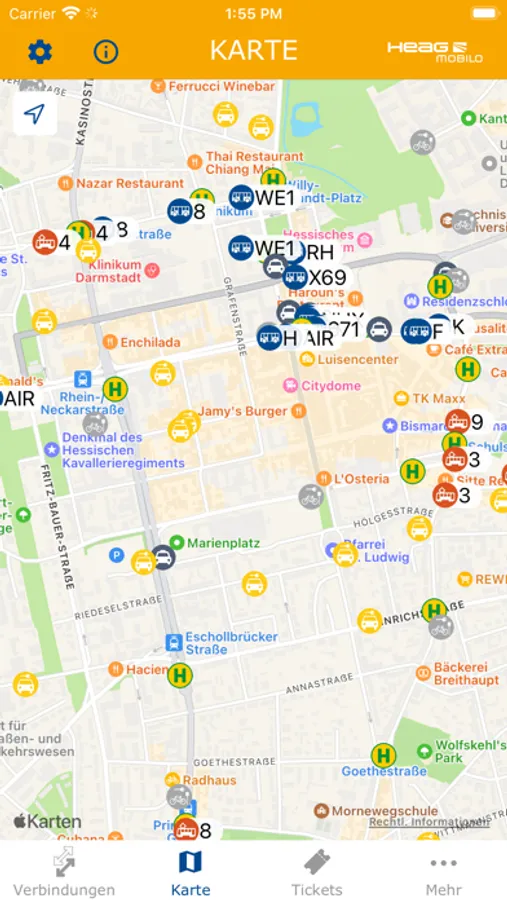 Die App der HEAG mobilo bietet Dir alle wichtigen Informationen für unser Verkehrsgebiet: Abfahrtszeiten, Fahrzeugortung, Verkehrsinfos – für Darmstadt, den Landkreis Darmstadt-Dieburg, den Kreis Groß-Gerau und die Nördliche Bergstraße. Einfach, intuitiv und schnell.