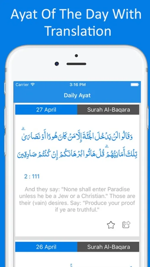 “Ayah of the day with translation” is the smartest way to memorize the QuranPerfect for the everyday, busy Muslim who desires an easier, more accessible way to build a Quran memorization habit in their daily life and achieve their memorization goals faster and easier.