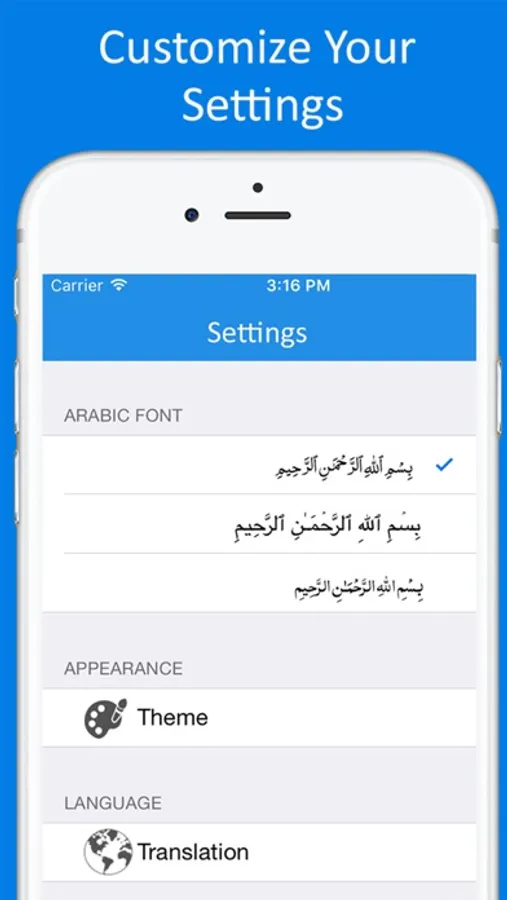 • For user feasibility user can resize the fonts or customize it so he/she will not face any difficulty in memorizing quran.