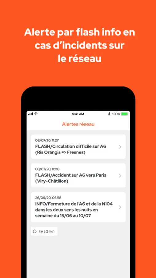 • Une information intégrée, avec le type d’événement (incident, panne, accident, chantier, etc.), sa localisation, son origine, sa description, ses impacts sur la circulation et, quand c’est possible, la durée prévisible des perturbations.