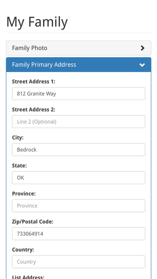 Access Family and Individual Information - See and update information about their own families and individuals, and add family photo