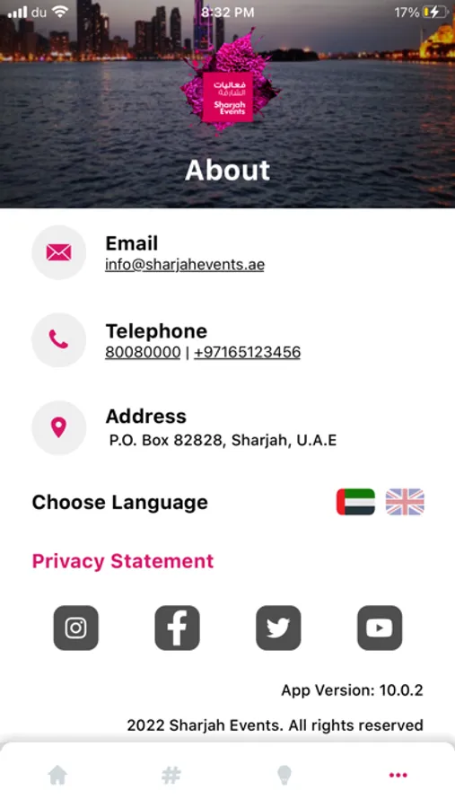 هل أنت مستعد لرؤية كل ما تقدمه الشارقة؟ إمارة الشارقة، تزخر بفعالياتها المتنوعة على مدار العام، إن كنت من هواة الفن والموسيقى والثقافة أو من عشاق الرياضة، أو من المهتمين بمجالات الاستثمار، أو كنت مستكشفاً لخفايا وجماليات المدن، أو أكثر من ذلك، فوجهتك هي الشارقة! ونحن في موقع فعاليات الشارقة، نقدم لكم كل ما تحتاجونه من معلوماتٍ لخوض تجربة المرح والمغامرة والاستكشاف. تفضل بتصفح موقعنا الإلكتروني المصمم لتجد بسهولة كل ما تبحث عنه من فعاليات أو معالم سياحية أو أماكن خفية في هذه الإمارة الرائعة. حان الوقت للاستكشاف. حان الوقت للعودة إلى الحياة. حان الوقت لرؤية الشارقة #تشرق_بفعالياتها!