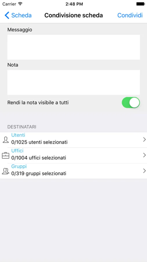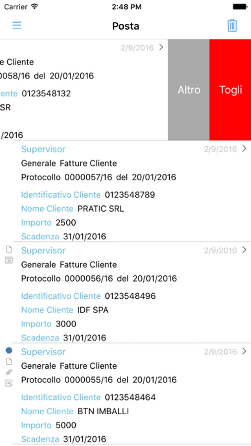 - inserimento di note e messaggi al documento, e personalizzazione visibilità;