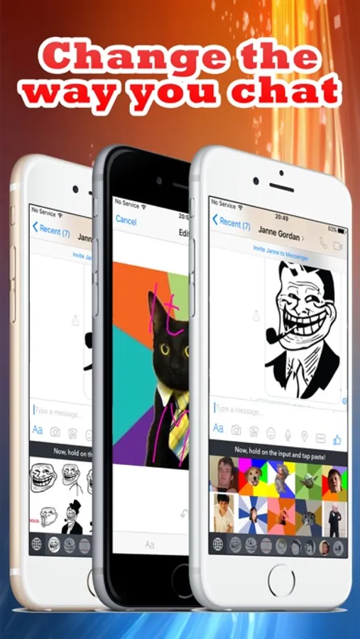 The keyboard is simple to use just tap on the category of the memes and tap again on the meme you like and hold on the text area and paste it. Once you paste it you can customize it with our brilliant generator. You can enter text with our beautiful font or you can choose a color and write it with your finger. With this tool you are the creator and maker. You can choose from eleven categories with memes with background, trolls, emojis, animals and faces. Create a stunning chat and be the producer.