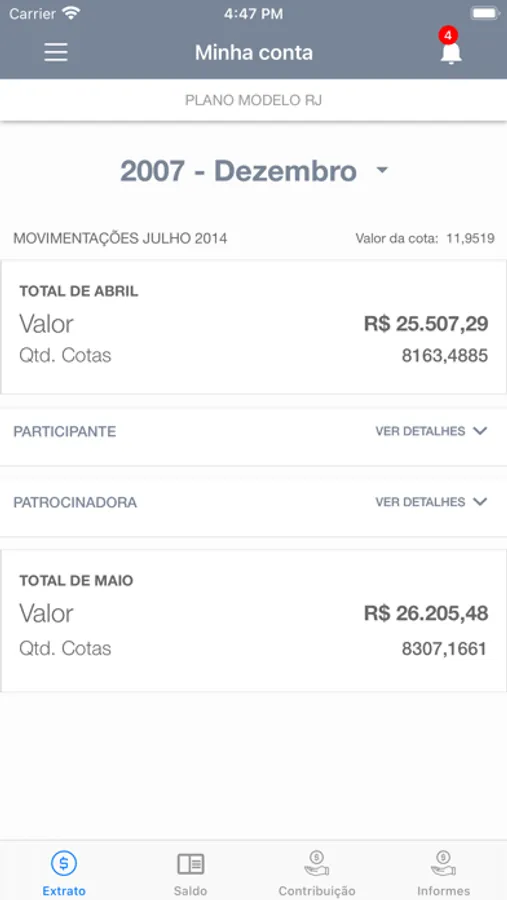 • Consultar seu saldo, extrato e contribuições, inclusive com histórico.