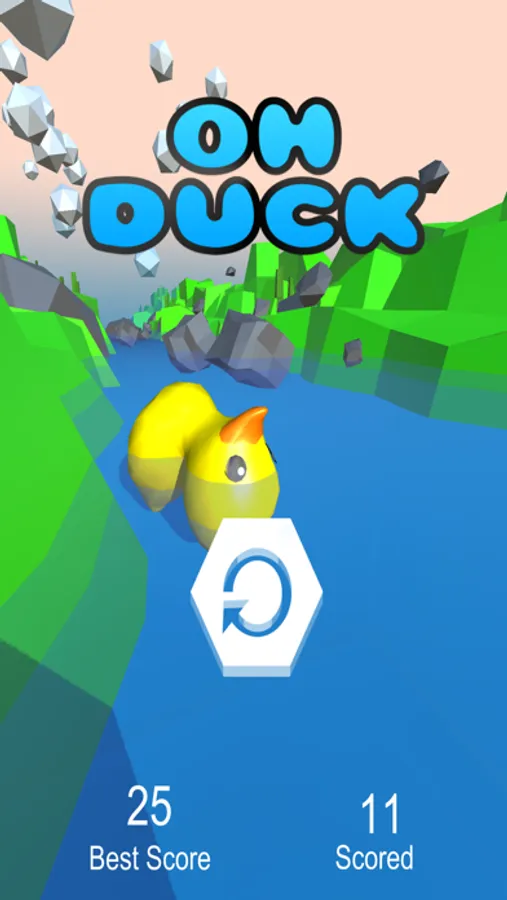 Navigate your duck through the rocky river, but be careful as the current speeds up.