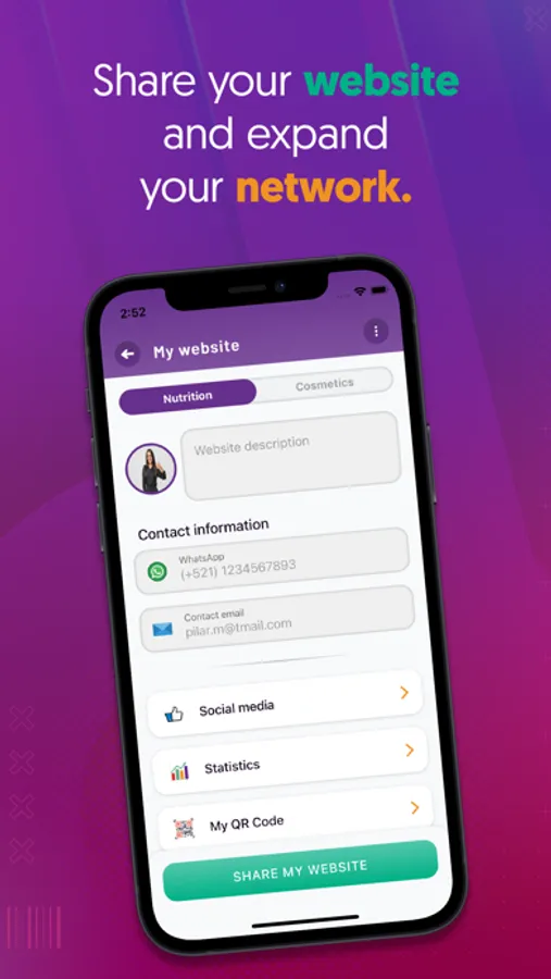 * Administration of your Omnilife webpage, where you can see analytics and make changes to your profile like changing your phone or social media.