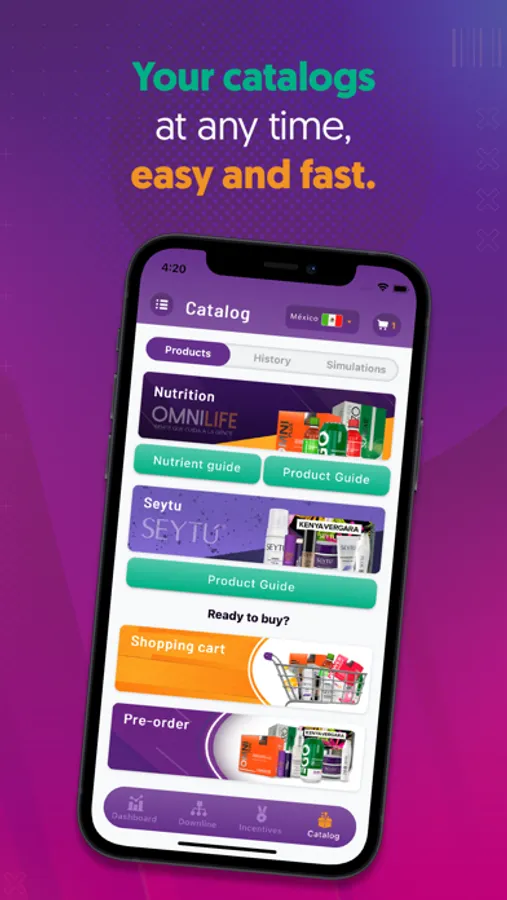 * The possibility to consult the catalogue of Omnilife and SEYTU products by name, price, price with discount.