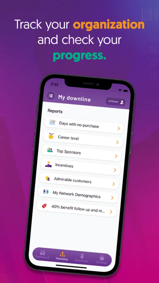 * Reports about the first line of your network, like unproductive days, bonuses progress, etc.