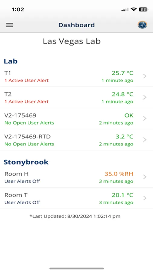 • See the last temperature, humidity, differential pressure reading etc.