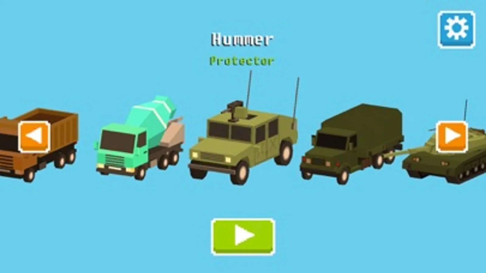 Blocky cars include : Jeep, Tanks, Ice Cream Truck, Stretch Limo, Hummer, Ambulance, Firetruck, Garbage Truck, F1 track Race car, turbo bat car, drift specialty car, and many other blocky cars and trucks.
