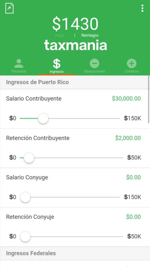 Cómo Funciona: Solo contesta unas preguntas simples sobre tus ingresos, deducciones y créditos para obtener el estimado inmediatamente en la pantalla. Si el número en el lado superior de la pantalla es negativo, significa que será el estimado de la cantidad que deberás aportar, si el número es positivo significa que será el estimado de tu reintegro.