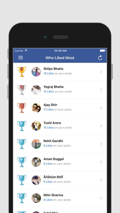 Find out your best friends by number of likes they have done on your posts